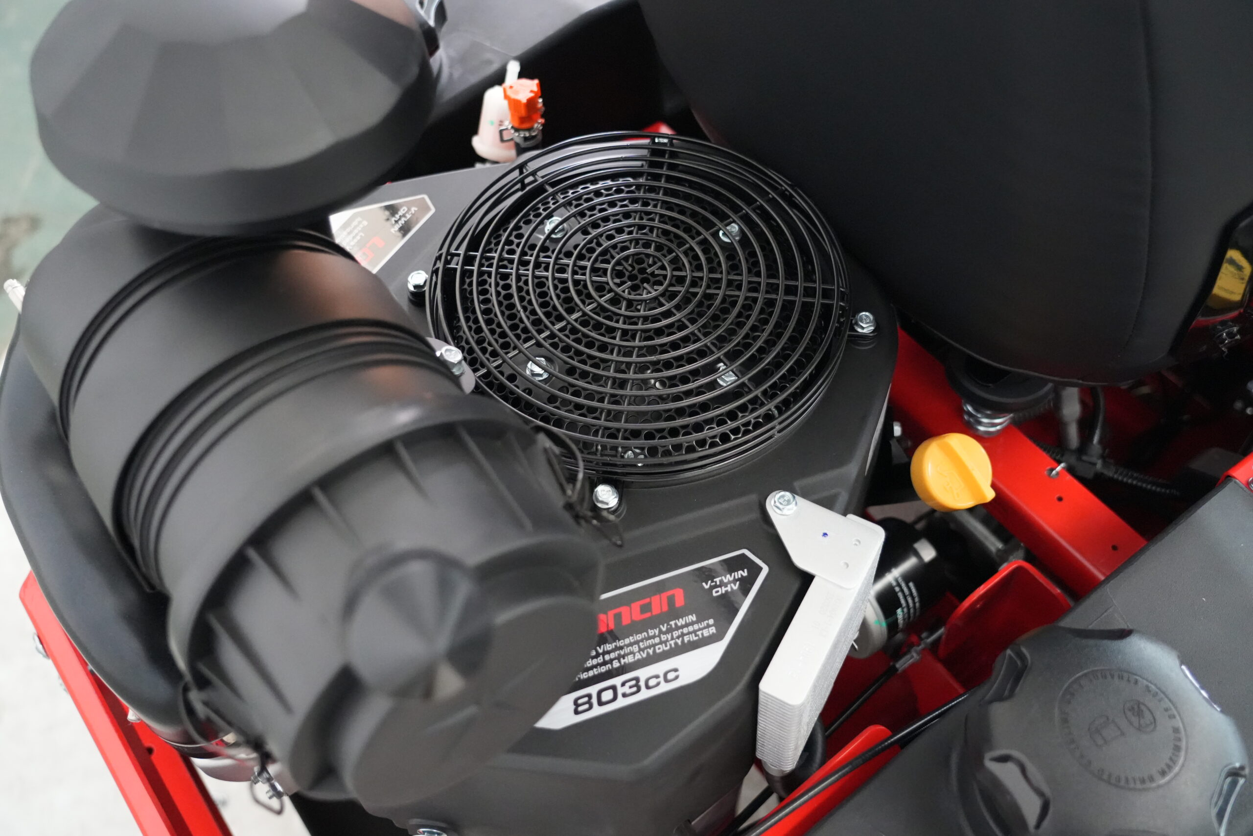 • Engine: Loncin 803cc V-Twin commercial grade engine (25.5hp, 55NM) – factory endurance tested to 2000 hours for proven long term reliability and heavy-duty performance. Paired with a Donaldson-style heavy duty air filter and oil cooler for extended operation in demanding conditions.