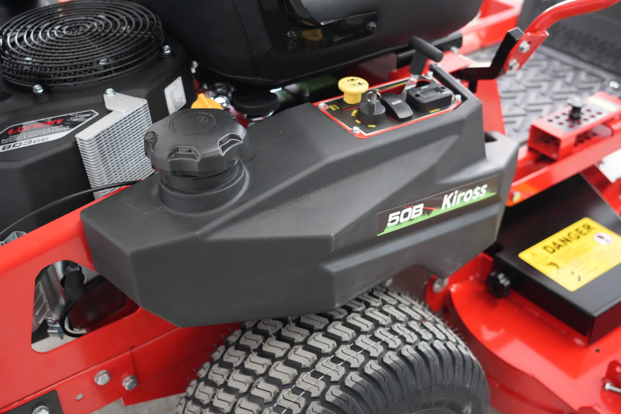 Powered by a robust Loncin 803cc V-Twin commercial series engine (rated at 25.5HP), the Kiross ZTR50B delivers exceptional torque (55nm) and cutting power through thick grass, uneven terrain, or longer sessions without compromise. The engine features a heavy duty Donaldson-style air filtration system for superior dust and debris protection in Britain’s changeable conditions, plus an integrated oil cooler to maintain temperatures and extend engine life during extended use.