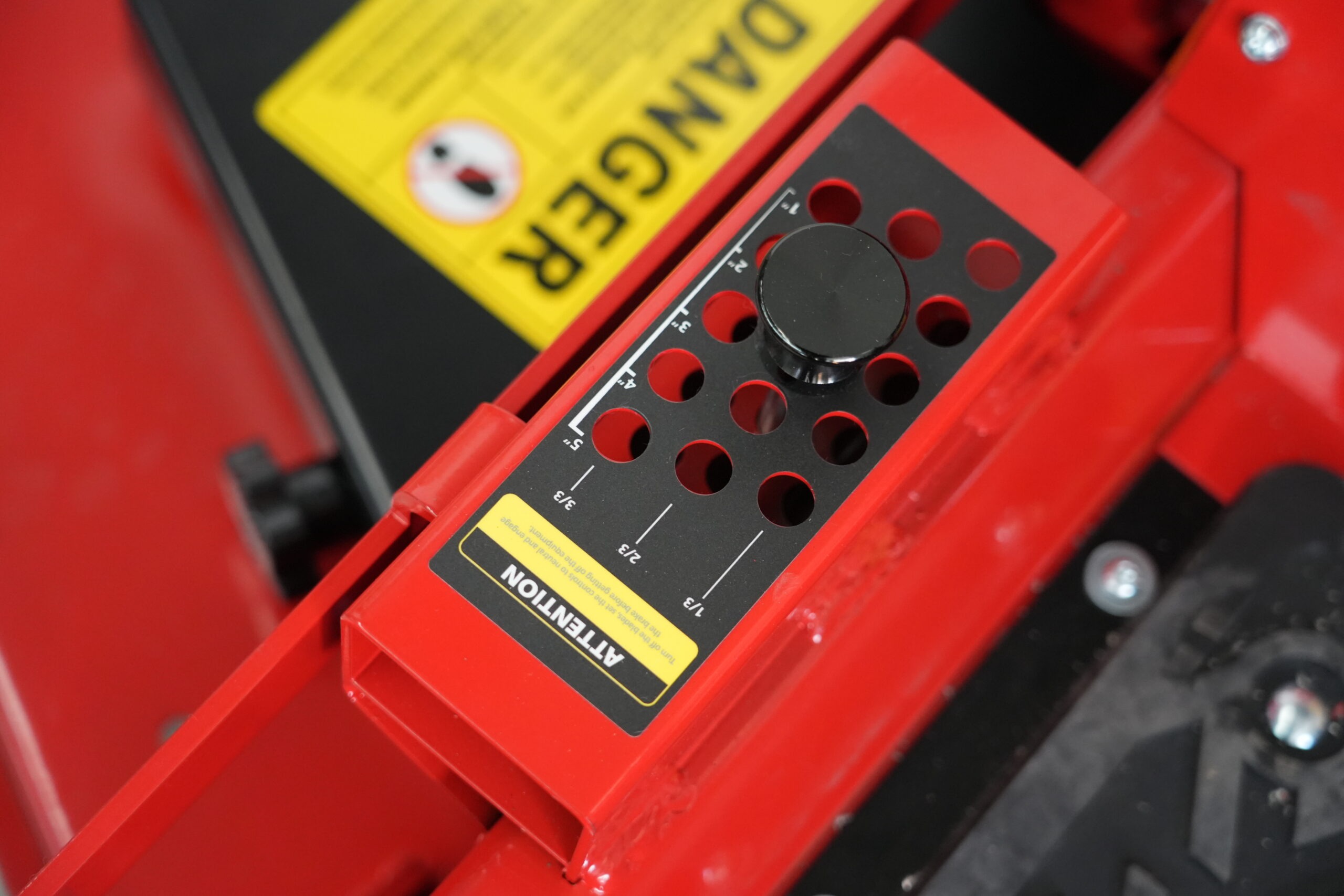 • Cutting height: Floor operated foot pedal (38-114mm)